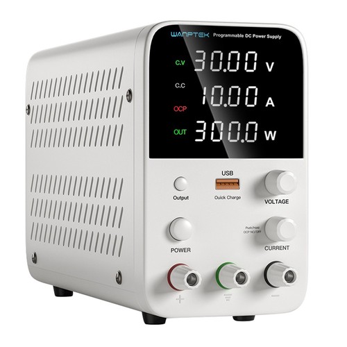Wanptek WPS3010B is a miniature switching DC power supply. The output voltage and current can be controlled and adjusted by variable resistors respectively, so it provides more convenience and accuracy in the adjustment of voltage and current. The panel also provides a high-precision three-window digital tube display of voltage, current, and power, so that users can intuitively see the current use status and various parameters of the machine.