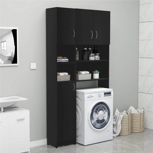 With this washing machine cabinet set, you can create and optimally use additional storage space in the bathroom. The clean lines and sleek design make it blend into your bathroom perfectly. Our chic washing machine cabinet set consists of two washing machine cabinets, one large and one small. The large one has 2 open compartments and 2 doors while the small one is equipped with 4 shelves with doors and 2 open shelves, offering various storage options and spacious storage space to store your laundry utensils, cleaning supplies, toiletries and other items well organised and within reach. Made of chipboard, the bathroom cupboards are sturdy and durable. Additionally, these laundry room racks are easy to clean with damp cloth. This bathroom cabinet set is easy to assemble with included mounting materials.