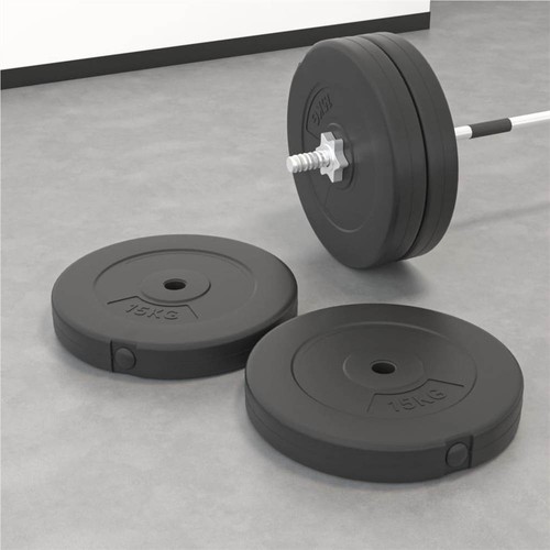 These weight plates are suitable for professional dumbbell workouts at home. The weight plates are covered with robust, floor-friendly plastic. Durable material: The barbell plate is made of cement and covered with robust, floor-friendly plastic. This allows you not to experience any annoying clanging sounds of the weights.Clearly stamped weight: The weight is clearly stamped on each weight disc for quick and easy identification.Variable weight selection: These barbell weight plates consist of 2 pcs 15 kg plates. The different weight sets always can meet your different training needs.Multifunctional dumbbell: The multifunctional dumbbell weight plate is suitable for training your chest, biceps, arms, triceps, and back muscles. Note:Each product comes with an assembly manual in the box for easy assembly.