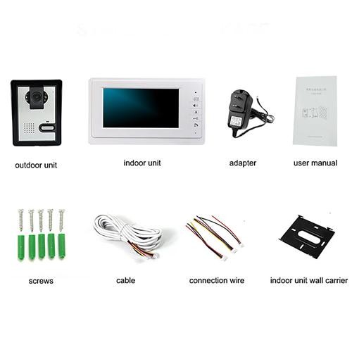 | Including in one box | Indoor monitor +Outdoor camera+cable+plate+power supply +4-wired+screw+manual |