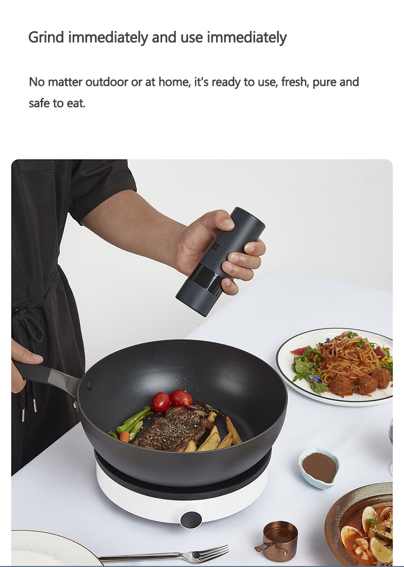 Built-in 500mAh power battery, efficient battery life one full charge can grind about 65g pepper, no need for frequent charging. The abrasives have been tested to achieve more than 6000 cycles and can last for more than 20 years.