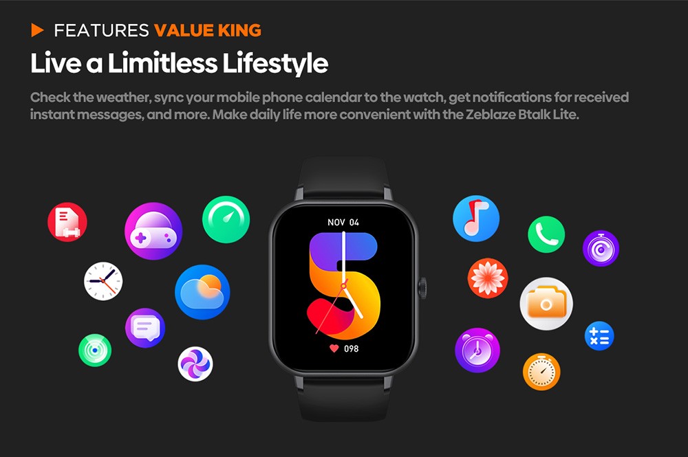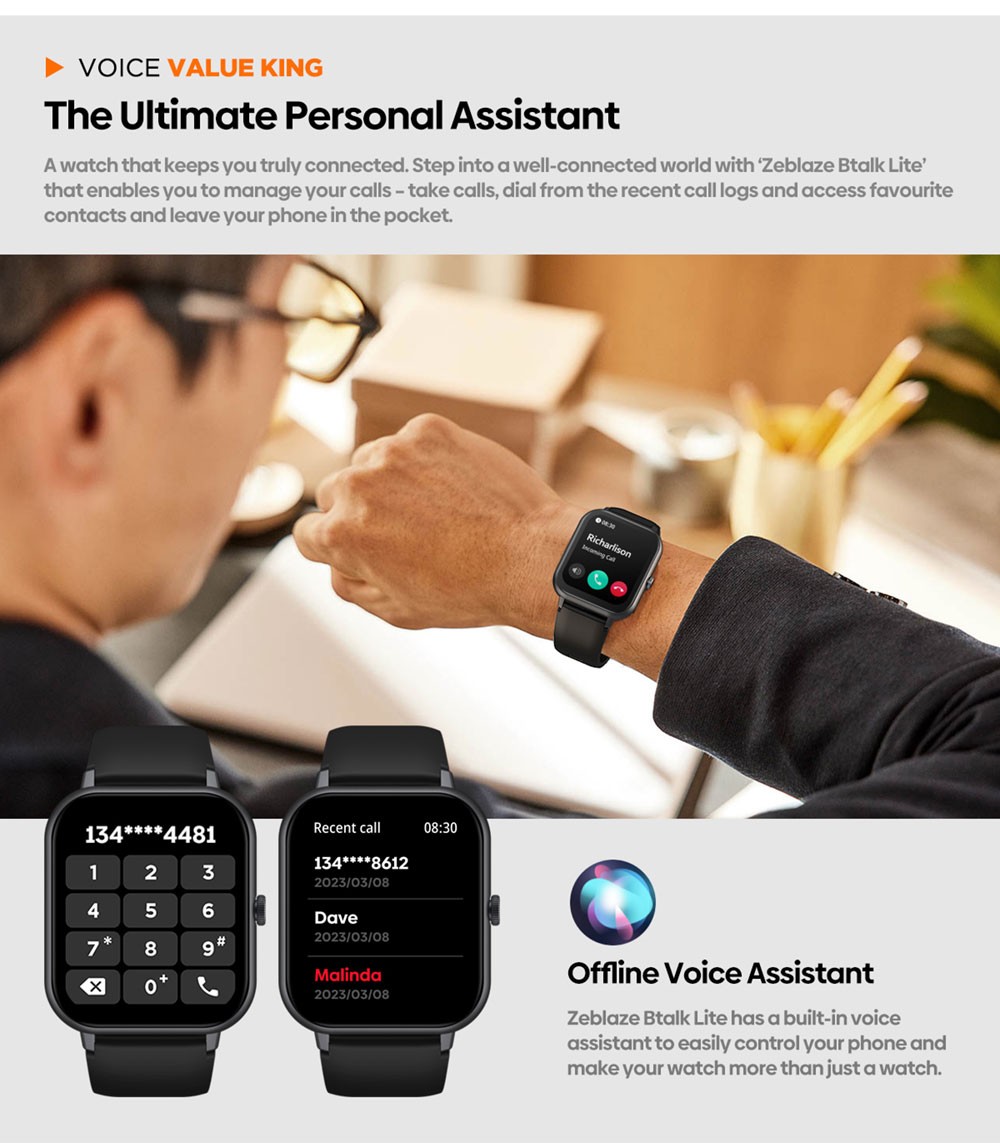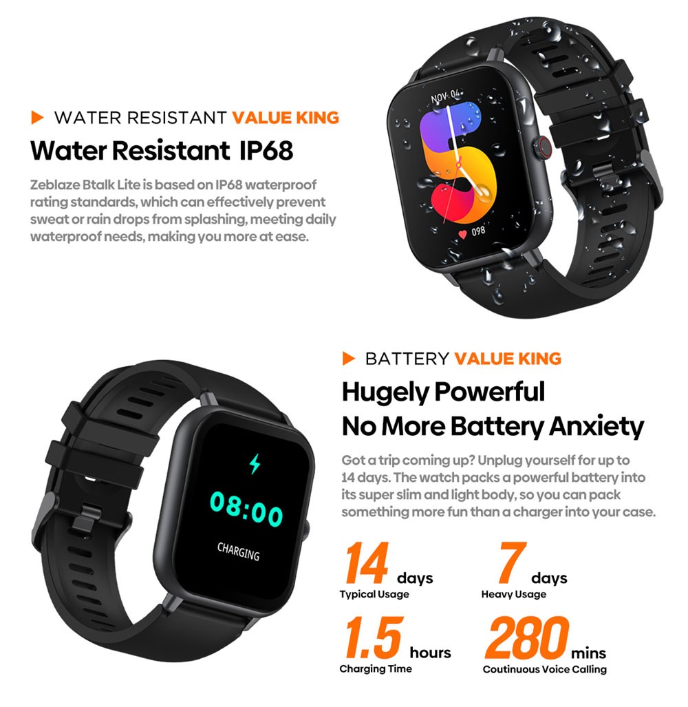 Zeblaze Btalk Lite Voice Calling Smartwatch, 1.83'' Large TFT Color Display, Bluetooth 5.1, Health Tracker, 200+ Watch Faces