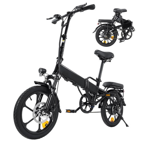 | Specification | Motor: 500W Battery: 36V 7.8Ah Max Load: 120kg Range: 55km Max Speed: 25km/h (30km/h after unlocking ) Throttle Grip: 10/15/25/30km/h Recommended Rider Height: 155cm~180cm Charger: 100V~240V AC, 42V 3Ah Charging Time: 2-3H Frame: Alloy steel folding frame Tires: 16*1.75" Inflatable tires Brake: 160mm Hydraulic disc brakes Lighting: LED, front headlight and rear light Front Suspension: Adjustable suspension fork |