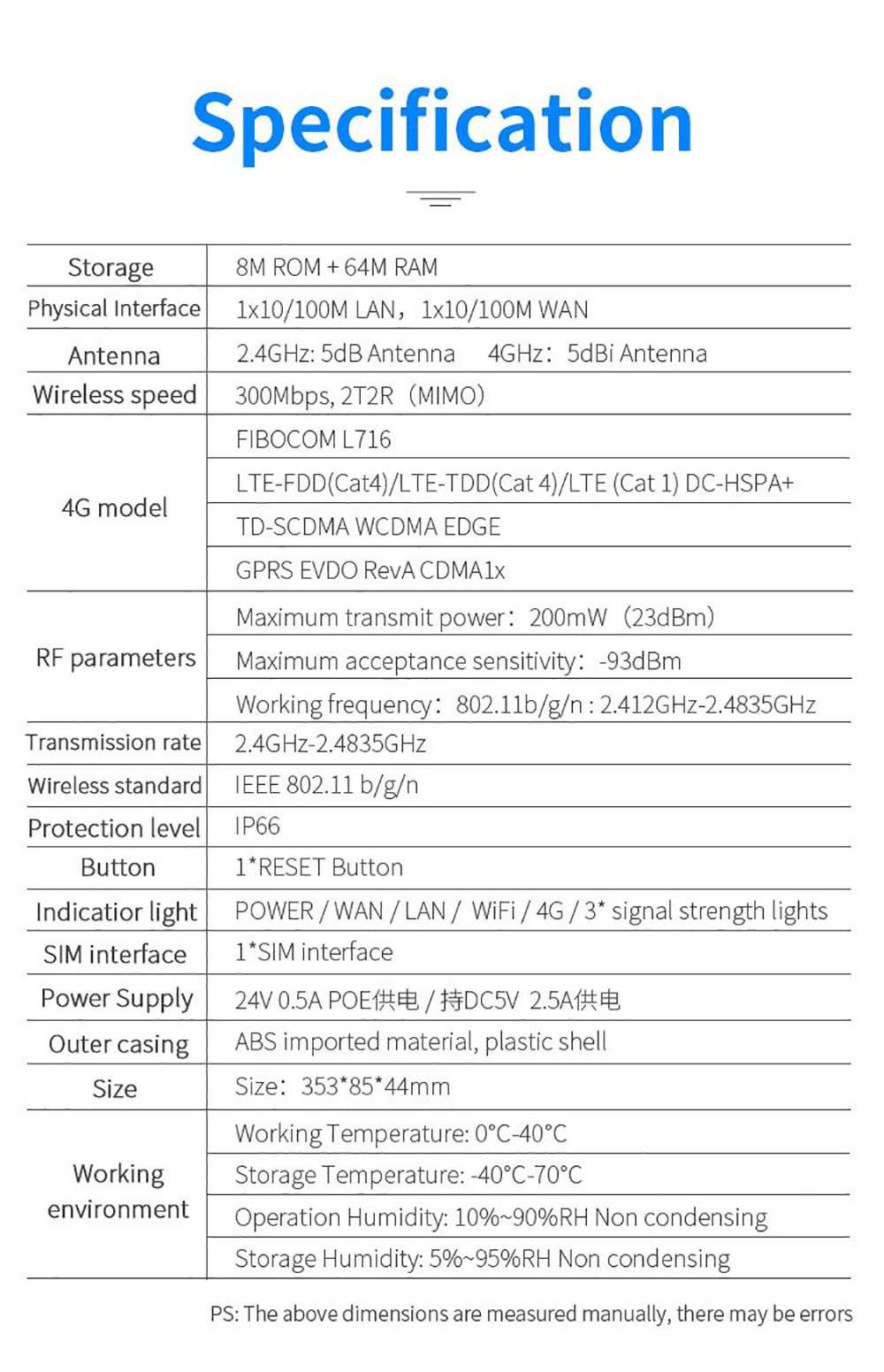 Antenna Specification: 2*5dBi