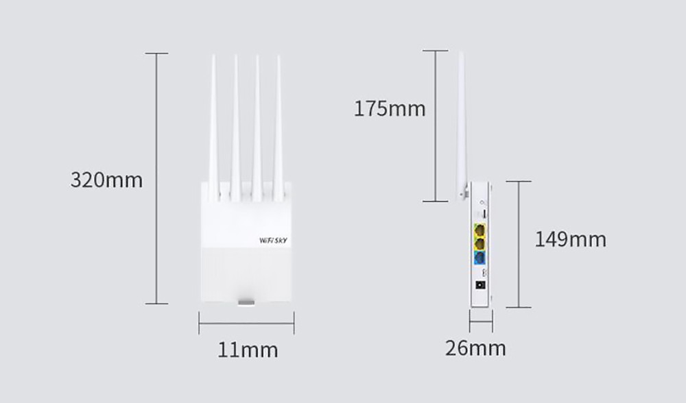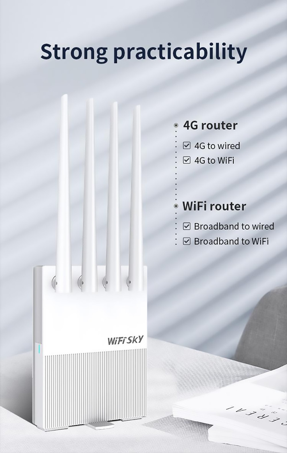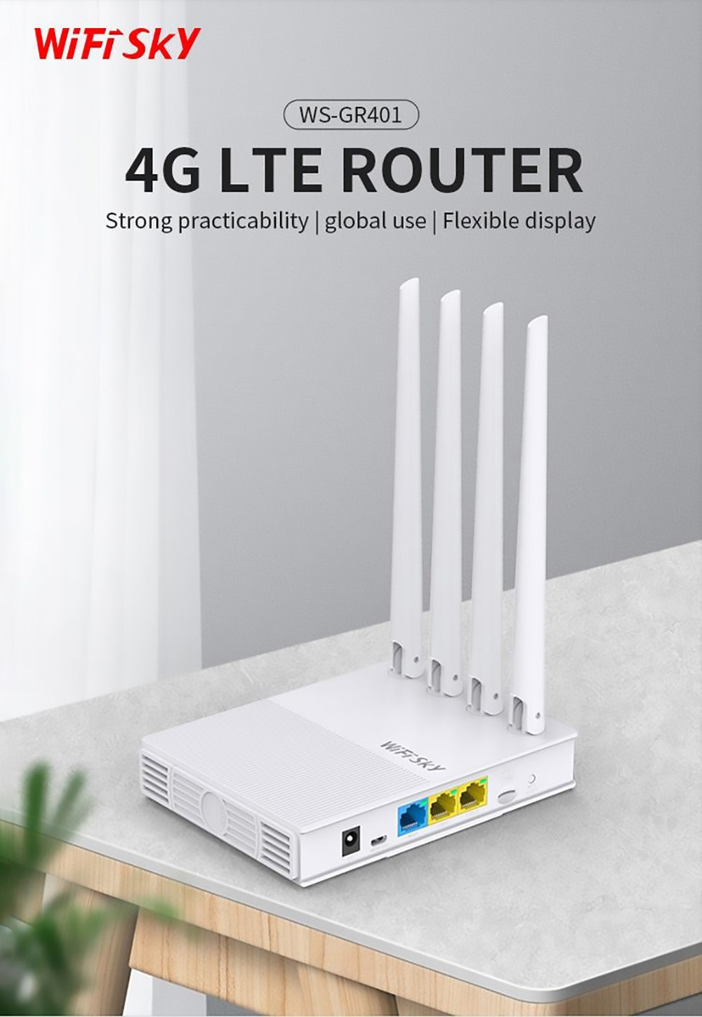 | General | Brand: wifisky Type: 4G router Model: GR401 Color: White |